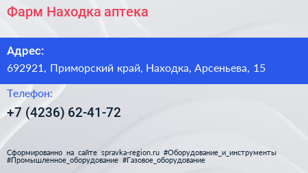 Фарм-Находка, аптека по адресу 692921, Приморский край, Находка, Арсеньева, 15 в дальнейшем Организация, размещена в следующих категориях: