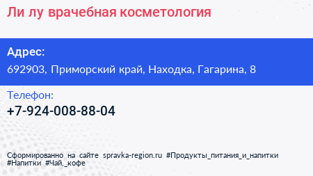 Ли-лу, врачебная косметология по адресу 692903, Приморский край, Находка, Гагарина, 8 в дальнейшем Организация, размещена в следующих категориях: