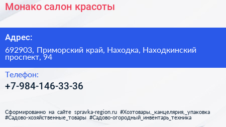 Монако, салон красоты по адресу 692903, Приморский край, Находка, Находкинский проспект, 94 в дальнейшем Организация, размещена в следующих категориях: