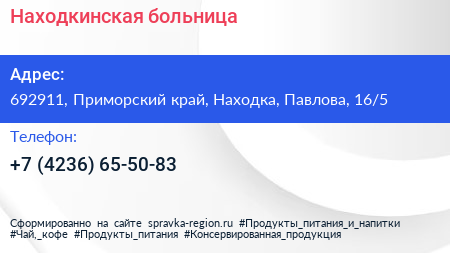 Находкинская больница по адресу 692911, Приморский край, Находка, Павлова, 16/5 в дальнейшем Организация, размещена в следующих категориях: