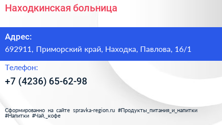 Находкинская больница по адресу 692911, Приморский край, Находка, Павлова, 16/1 в дальнейшем Организация, размещена в следующих категориях: