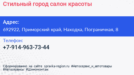 Стильный город, салон красоты по адресу 692922, Приморский край, Находка, Пограничная, 8 в дальнейшем Организация, размещена в следующих категориях: