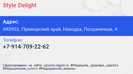 Style Delight по адресу 692922, Приморский край, Находка, Пограничная, 4 в дальнейшем Организация, размещена в следующих категориях: