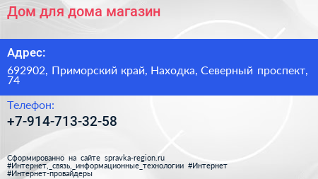 Дом для дома, магазин по адресу 692902, Приморский край, Находка, Северный проспект, 74 в дальнейшем Организация, размещена в следующих категориях: