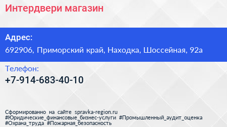 Интердвери, магазин по адресу 692906, Приморский край, Находка, Шоссейная, 92а в дальнейшем Организация, размещена в следующих категориях: