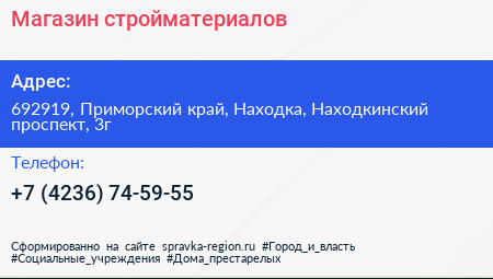 Магазин стройматериалов по адресу 692919, Приморский край, Находка, Находкинский проспект, 3г в дальнейшем Организация, размещена в следующих категориях: