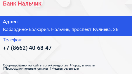 Банк Нальчик по адресу Кабардино-Балкария, Нальчик, проспект Кулиева, 2Б в дальнейшем Организация, размещена в следующих категориях: