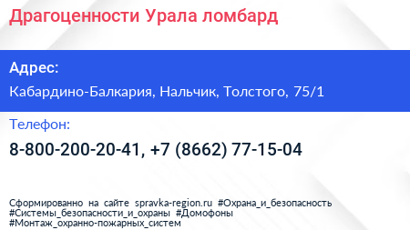 Драгоценности Урала, ломбард по адресу Кабардино-Балкария, Нальчик, Толстого, 75/1 в дальнейшем Организация, размещена в следующих категориях: