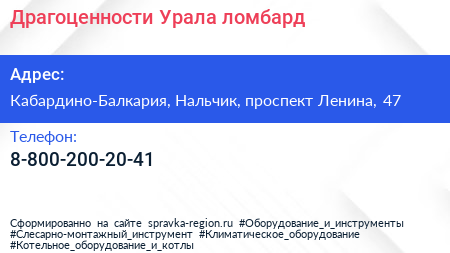 Драгоценности Урала, ломбард по адресу Кабардино-Балкария, Нальчик, проспект Ленина, 47 в дальнейшем Организация, размещена в следующих категориях: