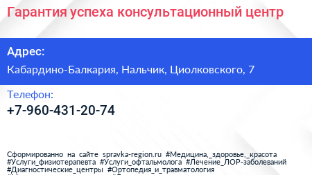 Гарантия успеха, консультационный центр по адресу Кабардино-Балкария, Нальчик, Циолковского, 7 в дальнейшем Организация, размещена в следующих категориях: