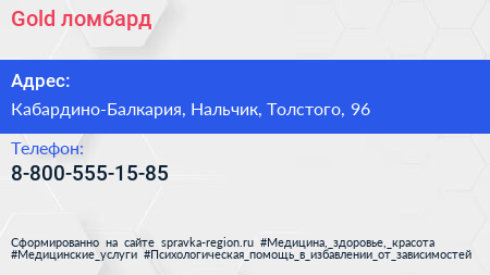 Gold, ломбард по адресу Кабардино-Балкария, Нальчик, Толстого, 96 в дальнейшем Организация, размещена в следующих категориях: