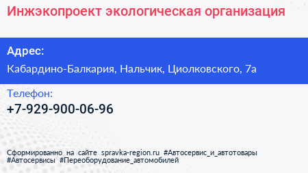 Инжэкопроект, экологическая организация по адресу Кабардино-Балкария, Нальчик, Циолковского, 7а в дальнейшем Организация, размещена в следующих категориях: