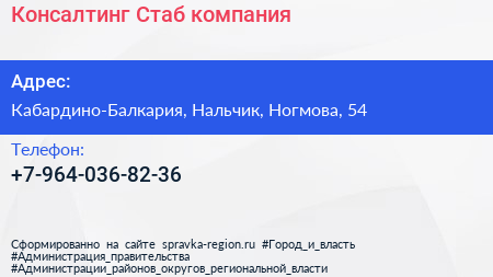 Консалтинг-Стаб, компания по адресу Кабардино-Балкария, Нальчик, Ногмова, 54 в дальнейшем Организация, размещена в следующих категориях: