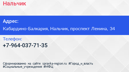 Нальчик по адресу Кабардино-Балкария, Нальчик, проспект Ленина, 34 в дальнейшем Организация, размещена в следующих категориях: