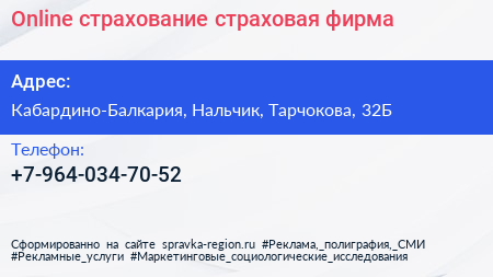 Online страхование, страховая фирма по адресу Кабардино-Балкария, Нальчик, Тарчокова, 32Б в дальнейшем Организация, размещена в следующих категориях: