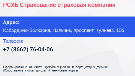 РСХБ-Страхование, страховая компания по адресу Кабардино-Балкария, Нальчик, проспект Кулиева, 10а в дальнейшем Организация, размещена в следующих категориях: