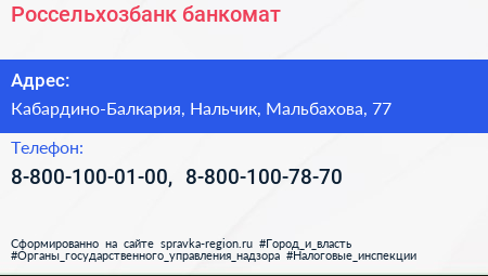 Россельхозбанк, банкомат по адресу Кабардино-Балкария, Нальчик, Мальбахова, 77 в дальнейшем Организация, размещена в следующих категориях: