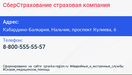 СберСтрахование, страховая компания по адресу Кабардино-Балкария, Нальчик, проспект Кулиева, 6 в дальнейшем Организация, размещена в следующих категориях:
