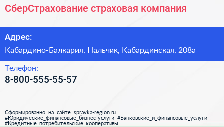 СберСтрахование, страховая компания по адресу Кабардино-Балкария, Нальчик, Кабардинская, 208а в дальнейшем Организация, размещена в следующих категориях: