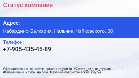 Статус, компания по адресу Кабардино-Балкария, Нальчик, Чайковского, 30 в дальнейшем Организация, размещена в следующих категориях: