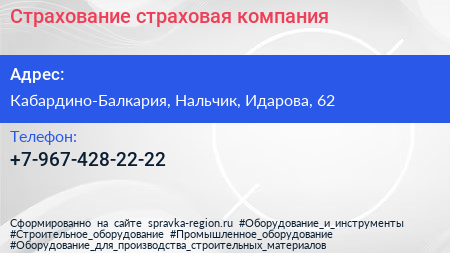 Страхование, страховая компания по адресу Кабардино-Балкария, Нальчик, Идарова, 62 в дальнейшем Организация, размещена в следующих категориях:
