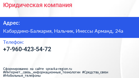 Юридическая компания по адресу Кабардино-Балкария, Нальчик, Инессы Арманд, 24а в дальнейшем Организация, размещена в следующих категориях: