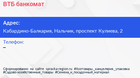 ВТБ, банкомат по адресу Кабардино-Балкария, Нальчик, проспект Кулиева, 2 в дальнейшем Организация, размещена в следующих категориях: