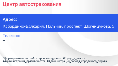 Центр автострахования по адресу Кабардино-Балкария, Нальчик, проспект Шогенцукова, 5 в дальнейшем Организация, размещена в следующих категориях: