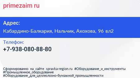 primezaim.ru по адресу Кабардино-Балкария, Нальчик, Ахохова, 96 вл2 в дальнейшем Организация, размещена в следующих категориях: