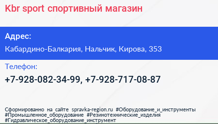 Kbr sport, спортивный магазин по адресу Кабардино-Балкария, Нальчик, Кирова, 353 в дальнейшем Организация, размещена в следующих категориях: