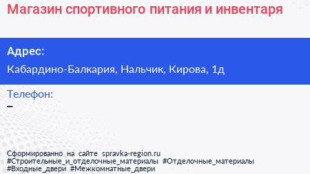 Магазин спортивного питания и инвентаря по адресу Кабардино-Балкария, Нальчик, Кирова, 1д в дальнейшем Организация, размещена в следующих категориях: