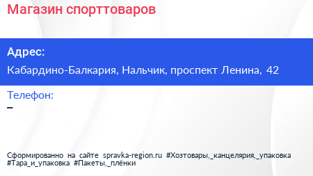 Магазин спорттоваров по адресу Кабардино-Балкария, Нальчик, проспект Ленина, 42 в дальнейшем Организация, размещена в следующих категориях: