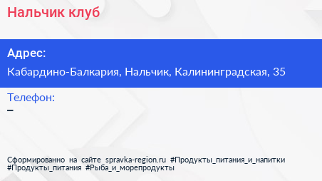 Нальчик, клуб по адресу Кабардино-Балкария, Нальчик, Калининградская, 35 в дальнейшем Организация, размещена в следующих категориях: