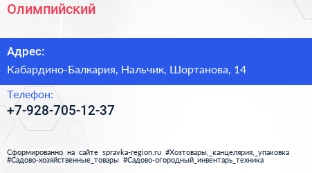 Олимпийский по адресу Кабардино-Балкария, Нальчик, Шортанова, 14 в дальнейшем Организация, размещена в следующих категориях: