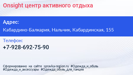 Onsight, центр активного отдыха по адресу Кабардино-Балкария, Нальчик, Кабардинская, 155 в дальнейшем Организация, размещена в следующих категориях: