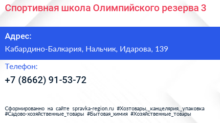 Спортивная школа Олимпийского резерва №3 по адресу Кабардино-Балкария, Нальчик, Идарова, 139 в дальнейшем Организация, размещена в следующих категориях: