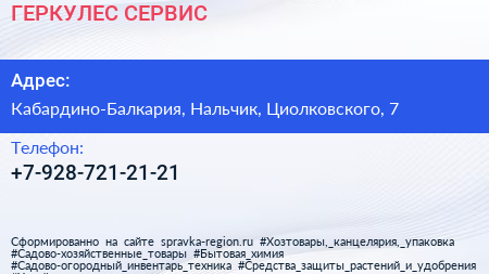 ГЕРКУЛЕС-СЕРВИС по адресу Кабардино-Балкария, Нальчик, Циолковского, 7 в дальнейшем Организация, размещена в следующих категориях: