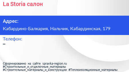 La Storia, салон по адресу Кабардино-Балкария, Нальчик, Кабардинская, 179 в дальнейшем Организация, размещена в следующих категориях: