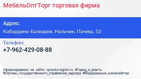МебельОптТорг, торговая фирма по адресу Кабардино-Балкария, Нальчик, Пачева, 52 в дальнейшем Организация, размещена в следующих категориях: