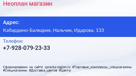 Неоплан, магазин по адресу Кабардино-Балкария, Нальчик, Идарова, 133 в дальнейшем Организация, размещена в следующих категориях: