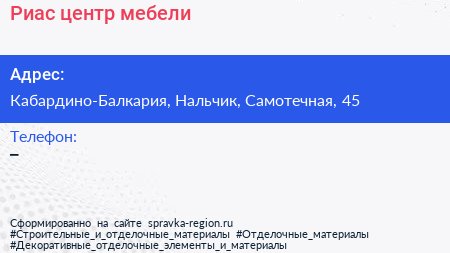 Риас, центр мебели по адресу Кабардино-Балкария, Нальчик, Самотечная, 45 в дальнейшем Организация, размещена в следующих категориях: