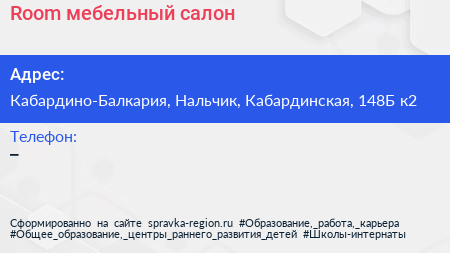 Room, мебельный салон по адресу Кабардино-Балкария, Нальчик, Кабардинская, 148Б к2 в дальнейшем Организация, размещена в следующих категориях:
