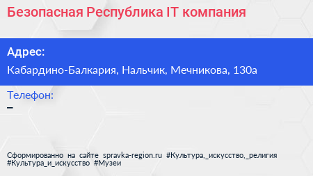 Безопасная Республика, IT-компания по адресу Кабардино-Балкария, Нальчик, Мечникова, 130а в дальнейшем Организация, размещена в следующих категориях: