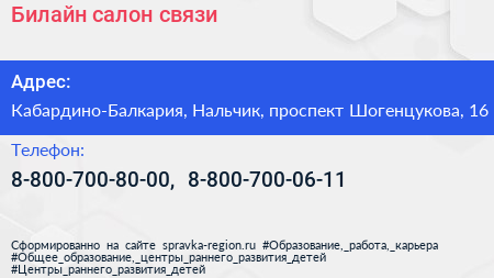 Билайн, салон связи по адресу Кабардино-Балкария, Нальчик, проспект Шогенцукова, 16 в дальнейшем Организация, размещена в следующих категориях: