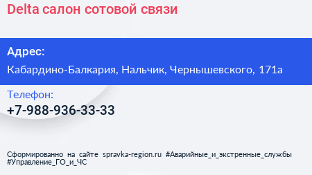 Delta, салон сотовой связи по адресу Кабардино-Балкария, Нальчик, Чернышевского, 171а в дальнейшем Организация, размещена в следующих категориях: