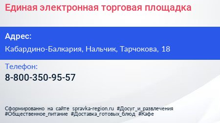 Единая электронная торговая площадка по адресу Кабардино-Балкария, Нальчик, Тарчокова, 18 в дальнейшем Организация, размещена в следующих категориях:
