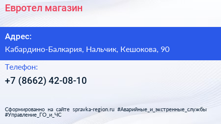 Евротел, магазин по адресу Кабардино-Балкария, Нальчик, Кешокова, 90 в дальнейшем Организация, размещена в следующих категориях: