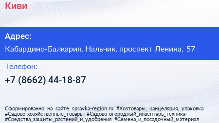 Киви по адресу Кабардино-Балкария, Нальчик, проспект Ленина, 57 в дальнейшем Организация, размещена в следующих категориях: