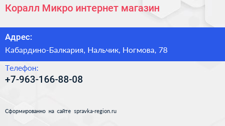 Коралл Микро, интернет-магазин по адресу Кабардино-Балкария, Нальчик, Ногмова, 78 в дальнейшем Организация, размещена в следующих категориях: