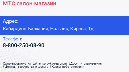 МТС, салон-магазин по адресу Кабардино-Балкария, Нальчик, Кирова, 1д в дальнейшем Организация, размещена в следующих категориях: